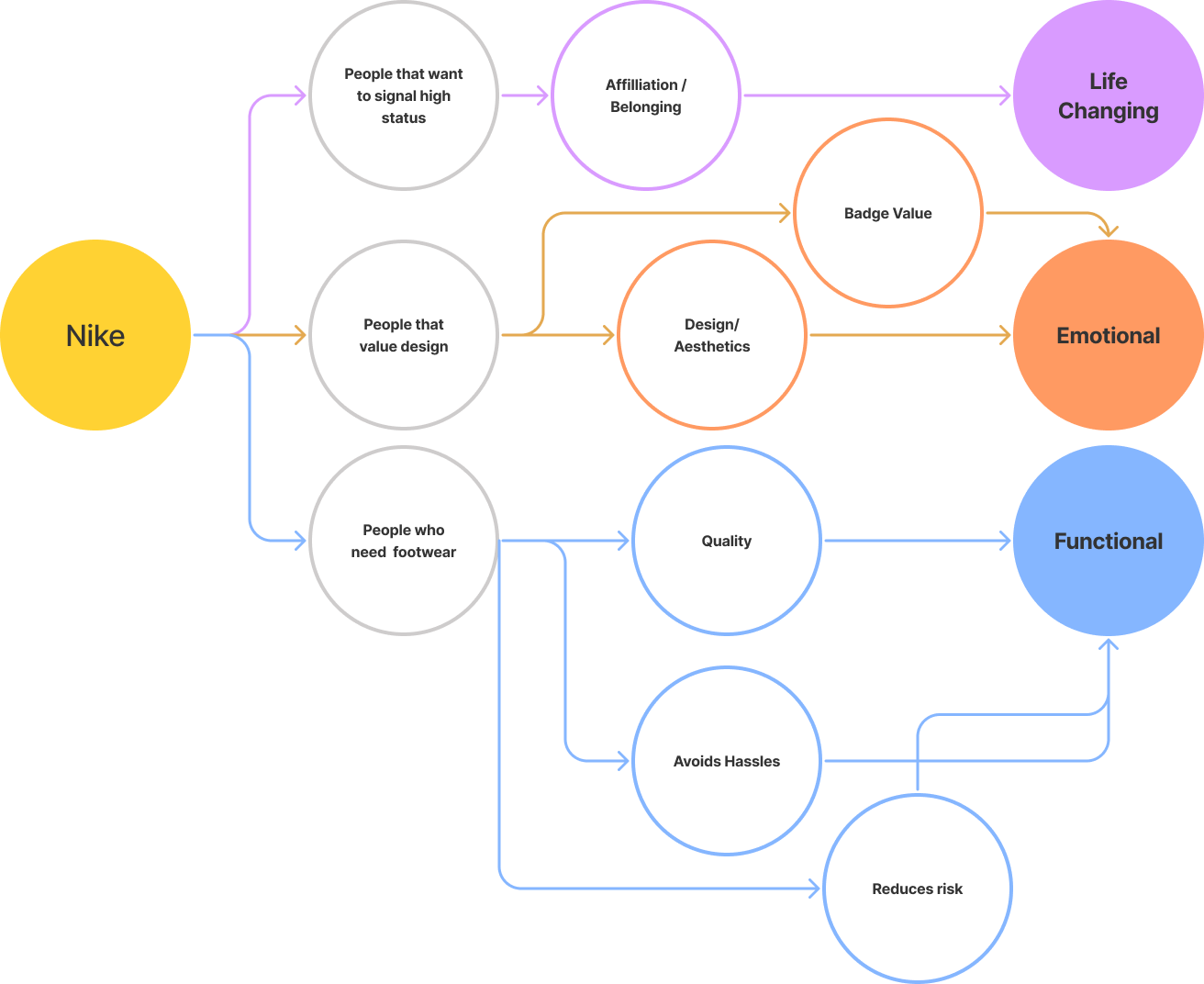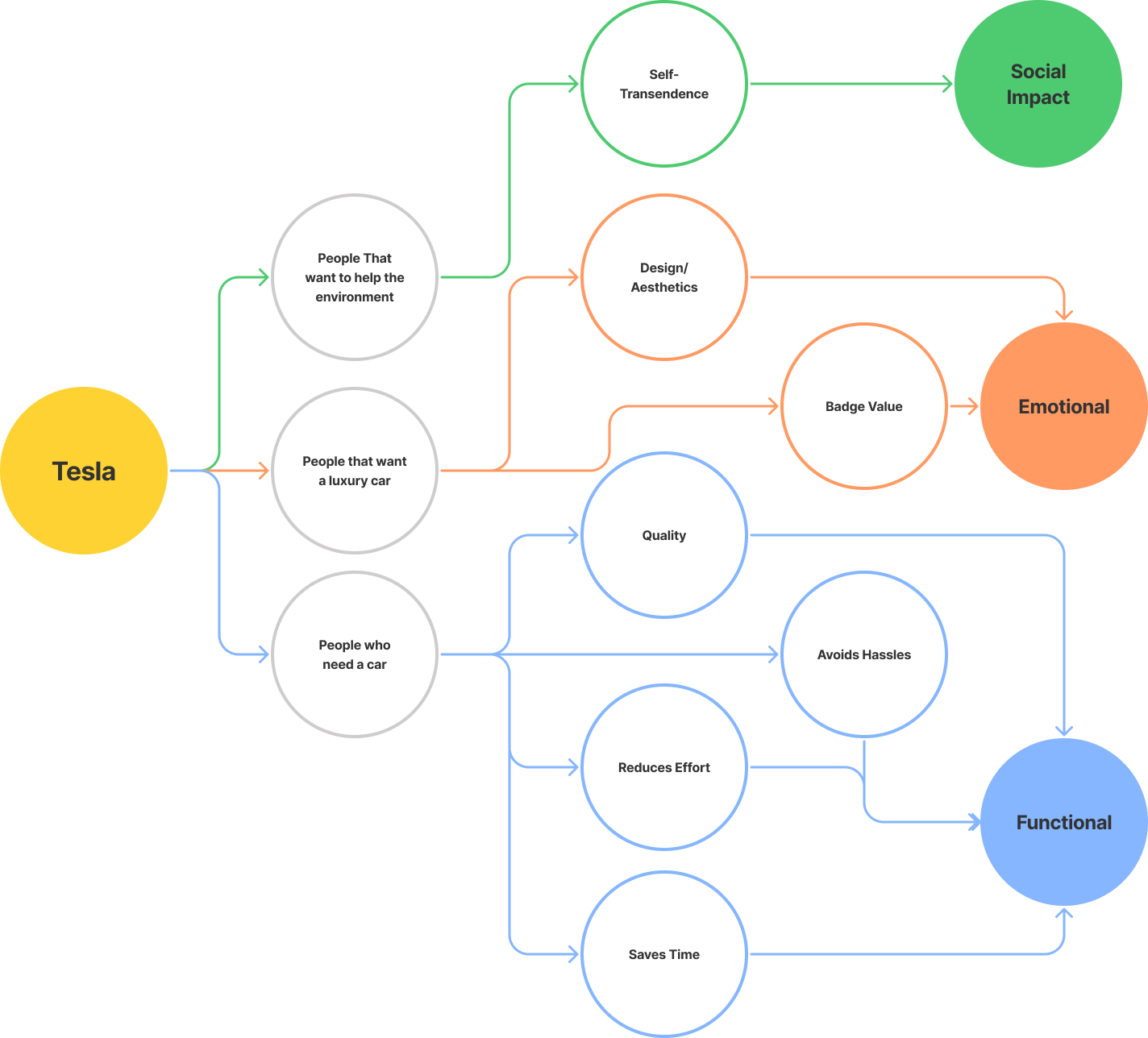 Since Nike and Tesla have a targeted customer base, they understand how to provide value beyond their basic needs. To demonstrate this, I will map their customer needs to a framework called the Elements of Value. The Elements of Value is a concept developed by Bain and Company to chart worth based on a user's need. This chart places those needs in a structure that emulates Mazlov's hierarchy of Needs. The main idea that the more customer needs your company fulfills, the higher the value of the overall product. The higher needs on the chart translate to higher loyalty and revenue for that product or company.